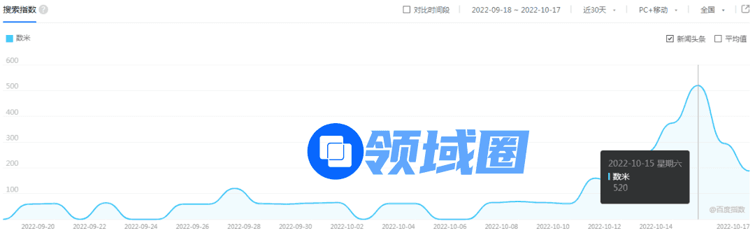 具体来看,“数米”作业事件讨论度最高的时期是在10月10日之后,关键词“数米”的百度指数在这一时期也出现了显著的飞跃,并且在15日到达了顶峰。