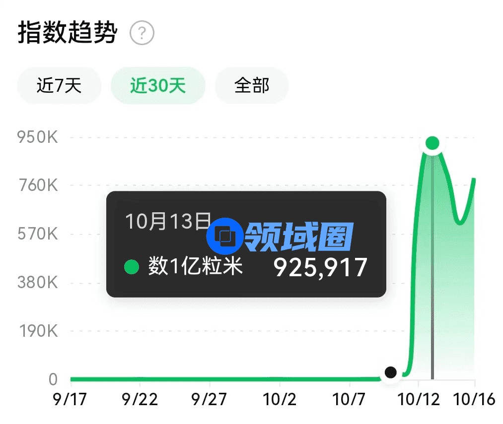 游戏同名关键词“数1亿粒米”微信指数也在这一段时间出现了明显的异动,10月13日,该词的搜索指数增长到顶点,在网友们对“作业事件”进行了热议后,该游戏在15日,16日后的搜索指数再次迎来了一波增长。