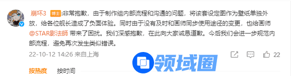事情的起因是10月7日,米哈游旗下3D动作游戏《崩坏3》的官方账号发布了游戏的六周年手机主题壁纸,但在发布后不久评论区就有大量玩家指出壁纸存在完成度低、不用心、人体结构错误等一系列问题,因为周年庆贺图对于玩家来说有着极为重要的意义,所以该事件在玩家圈里引发了广泛讨论。