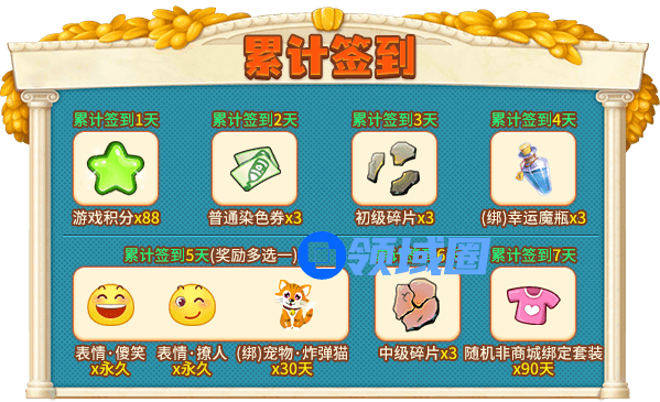 活动期间,700积分及以上的玩家每日签到可随机获得:粉、蓝、黄派对帽之一,有效期均为7天。