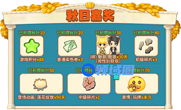 累计积攒“秋叶”越多,可领取的奖励越多:
