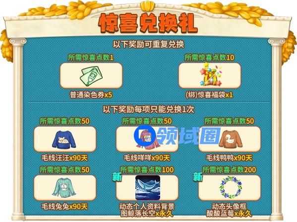 3、绑定道具只能兑换非绑定道具一半的惊喜值;