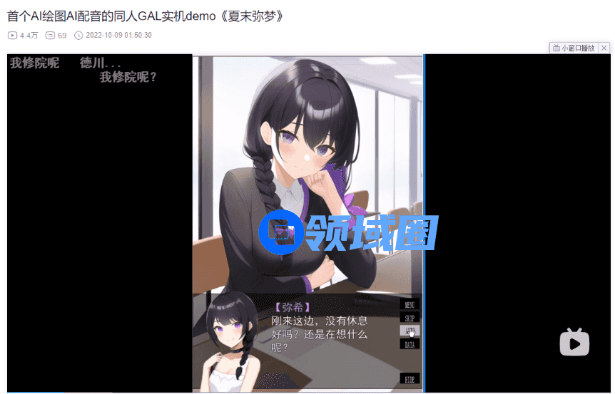 在广大网友还沉浸在能够享受不限量涩图的喜悦中时,聪明的人已经开始打起了商业化的主意。B站UP主“秋之雪华”率先推出了 纯AI配音绘图的GAL游戏《夏末弥梦》,据制作人介绍,这款游戏利用nvlmaker打造,所有的CG均由novelai创作,语音部分全部由vits合成,训练时使用了弥希miki的录播数据。制作人坦言从产生想法到完成这三分钟的内容,总共花费三天时间,AI技术确实带来了太多的可能性。