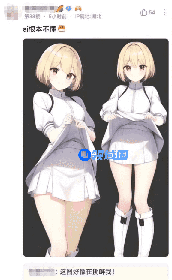 第二,无法精准满足需求。AI涩图是通过指定词汇进行作画生成,通过工具进行再次“调教”,因此不可能像人工绘图这样将需求作为首要目标。“词不达意”的例子比比皆是,遇到这种“AI画师”甲方爸爸八成要气死。