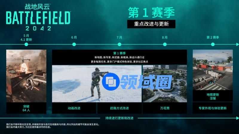 除此之外,官方在已公布的未来计划中将逐一进行现有地图的改进,S1赛季的上线仅仅只是开始,未来更多的新地图、专家、武器载具也将陆续推出,持续丰富《战地风云2042》的游戏内容。