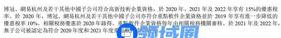网易游戏三大主体网易广州、网易杭州和网易雷火中,只有网易杭州获得高新科技企业认证,按15%优惠税率纳税。