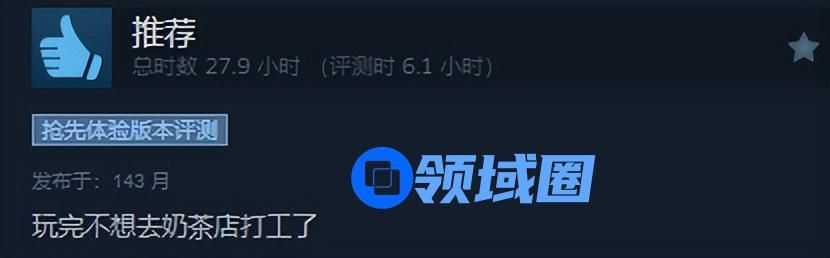 作为一款肉鸽版模拟经营游戏,抢先体验版在Steam上线不到三周,《杯杯倒满》销量破10万,获得高达92%的好评率。因过于写实,精准狙击了上班族的“奶茶店”梦。有玩家表示,因玩游戏如上班,他对奶茶有了“戒断反应”。也有玩家斗志满满,“我已经能直接入职某雪冰城”!