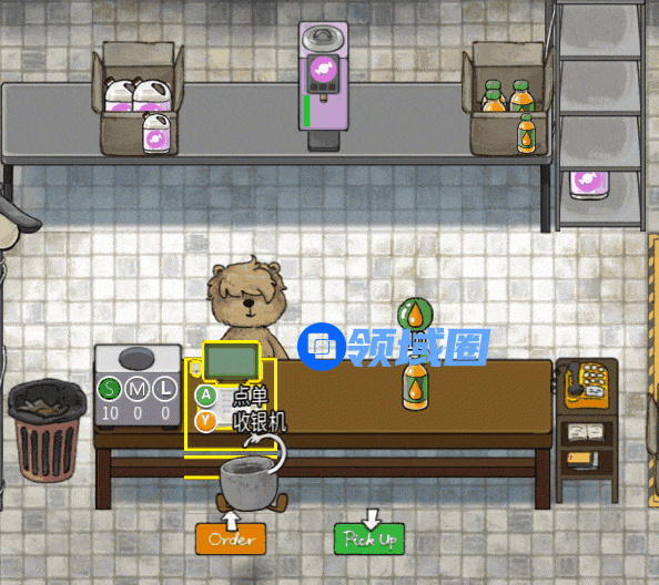 从顾客点单、制作,出单,玩家都要面面俱到。在不同关卡,玩家还需学习全新配方增加竞争力。从简单的鲜榨柠檬汁逐渐升级至抹茶、生椰咖啡,有的还需用熊掌一阵搅拌。除此之外,客人下单饮品还有温度、加糖与否的不同。如果温度做错,就能听见杯子舔吧嘴“唧呀”一声:“温度不对啊。”