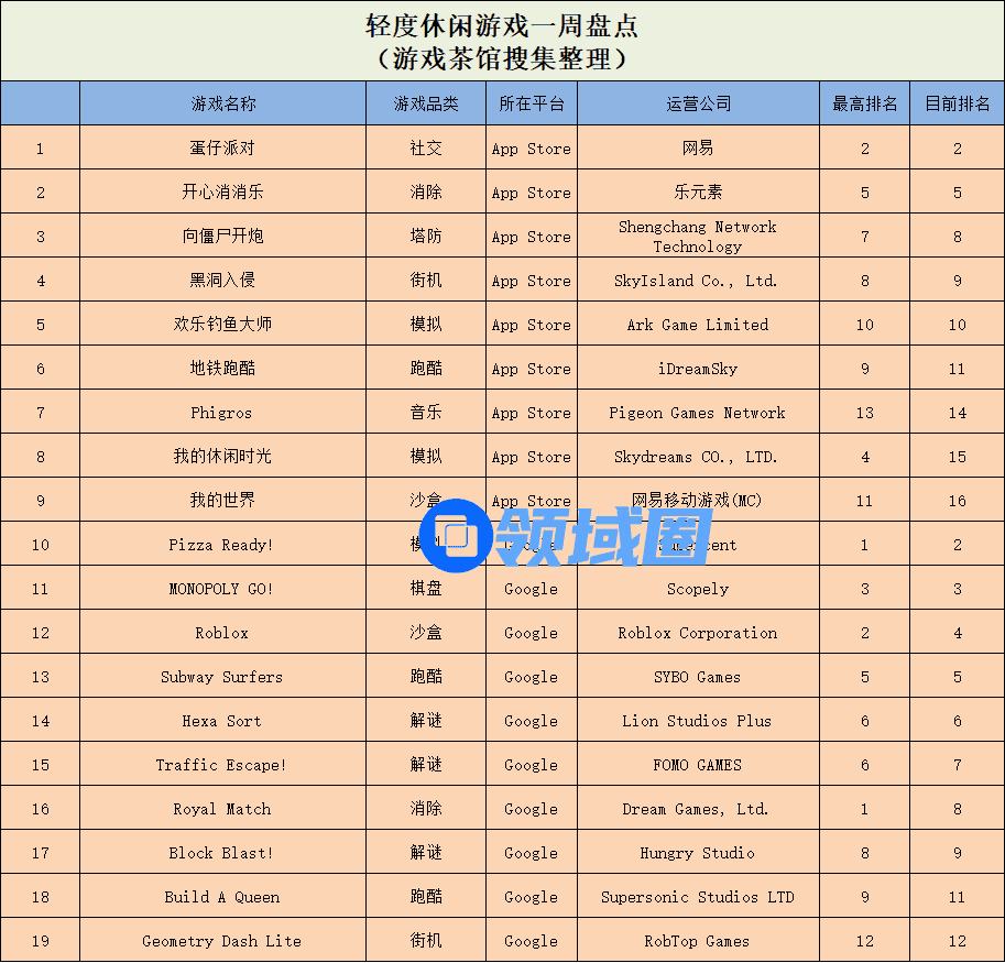 手游方面,冲上iOS免费游戏榜单前列的轻度休闲游戏,仍以运营了多年的老游和大厂出品新作为主。其中,网易旗下的《蛋仔派对》持续稳坐轻度休闲游戏榜单魁首,经典消除游戏《开心消消乐》和塔防玩法的《向僵尸开炮》紧随其后,分别拿下iOS免费游戏榜单的第5名和第8名。同时,Pigeon Games Network旗下的音乐游戏《Phigros》和模拟类游戏《我的休闲时光》也在本周冲上了iOS免费游戏榜单TOP15,且其当前分别位于榜单第14和第15名。