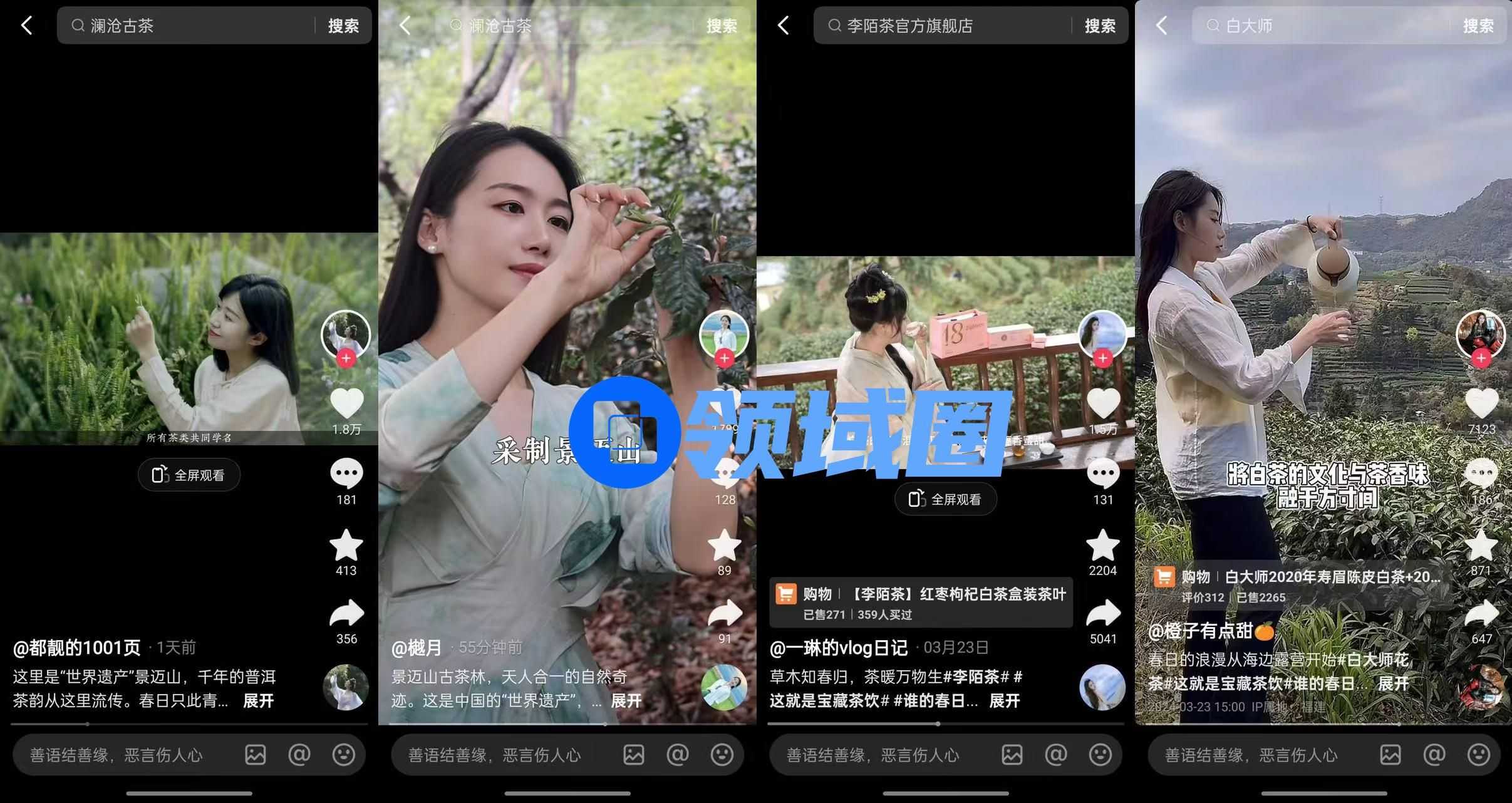 澜沧古茶 携手@都靓的1001页 @主持人樾月 ,李陌茶携手@一琳的vlog日记 ,白大师联动@橙子有点甜 发布茶山溯源踏春喝茶短视频,深度讲解品牌与产品的特殊价值,沉浸体验和特色内容种草激发用户兴趣,为用户买单提供一个理由。