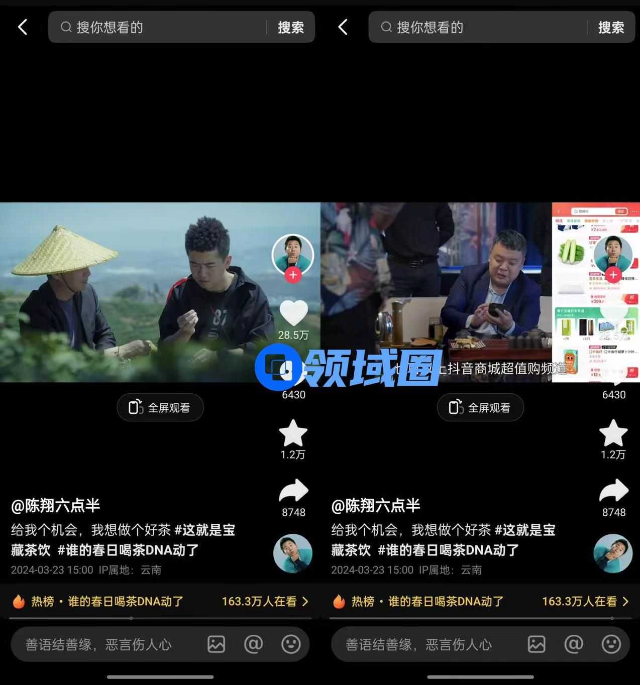 从短视频跳转到直播下单,从线下推广走进线上商城,从好茶种草榜单到低价好物超值购,抖音商城用“一个屏幕”直达用户需求,缩短消费者与茶源的距离,让商家与用户“一个卖得好,一个买得值”,实现宝藏品牌与消费者双向奔赴,有效助推茶类品牌品效合一、声量销量双丰收,在这个万物复苏的季节掀起一股爱茶追茶的春茶热。