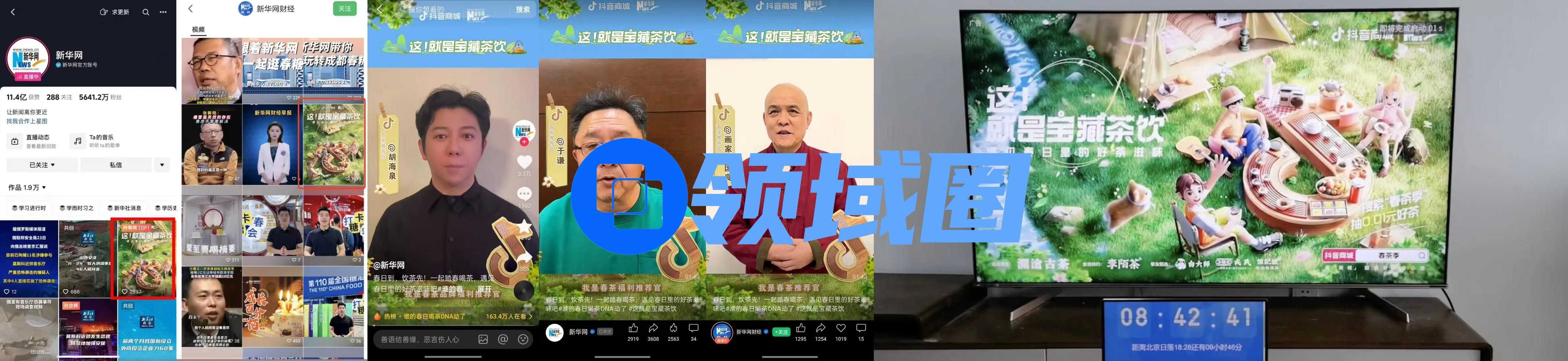 线上传播方面,抖音商城一边通过自身平台内优质内容提高品牌知名度,拉满曝光度,一边还与新华社联动胡海泉、于谦、画家史国良、中国茶叶博物馆馆长王建荣等多名艺人、文化名人为春茶线上打call,借助权威媒体发声,同时通过电视贴片投放提升品牌生意规模和人群资产。