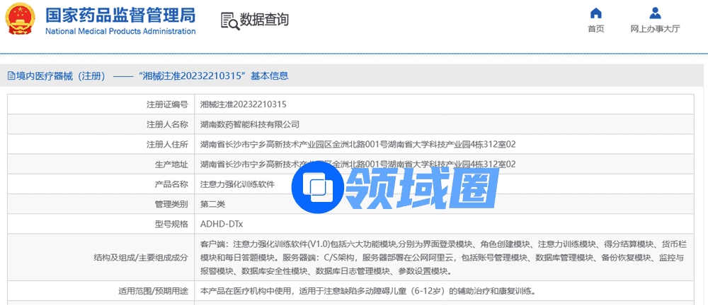 依托盛趣科学研究院前期研究成果转化而来的数药智能,于2021年成立。去年,数药智能研发的多动症数字药物——《注意力强化训练软件》(商品名专数达®,以下简称专数达)已获得国家药监局(NMPA)批准注册,拿到了医疗器械二类证书。据悉,这是国内多动症治疗方案首个数字处方。