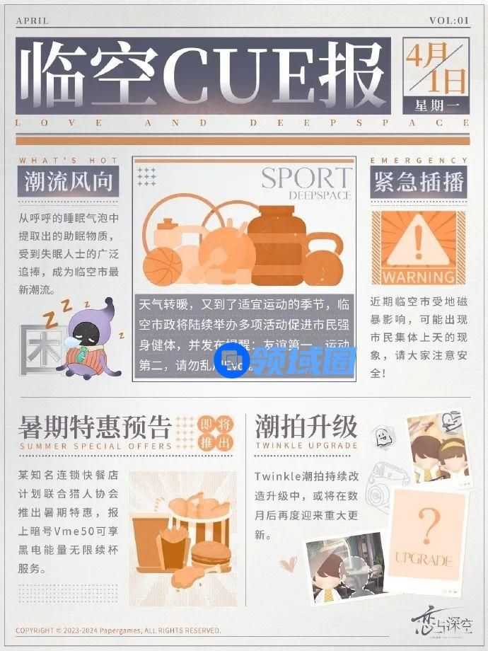 《恋与深空》发布“临空cue报”,一览四月新趣闻。(Vme50是吧)