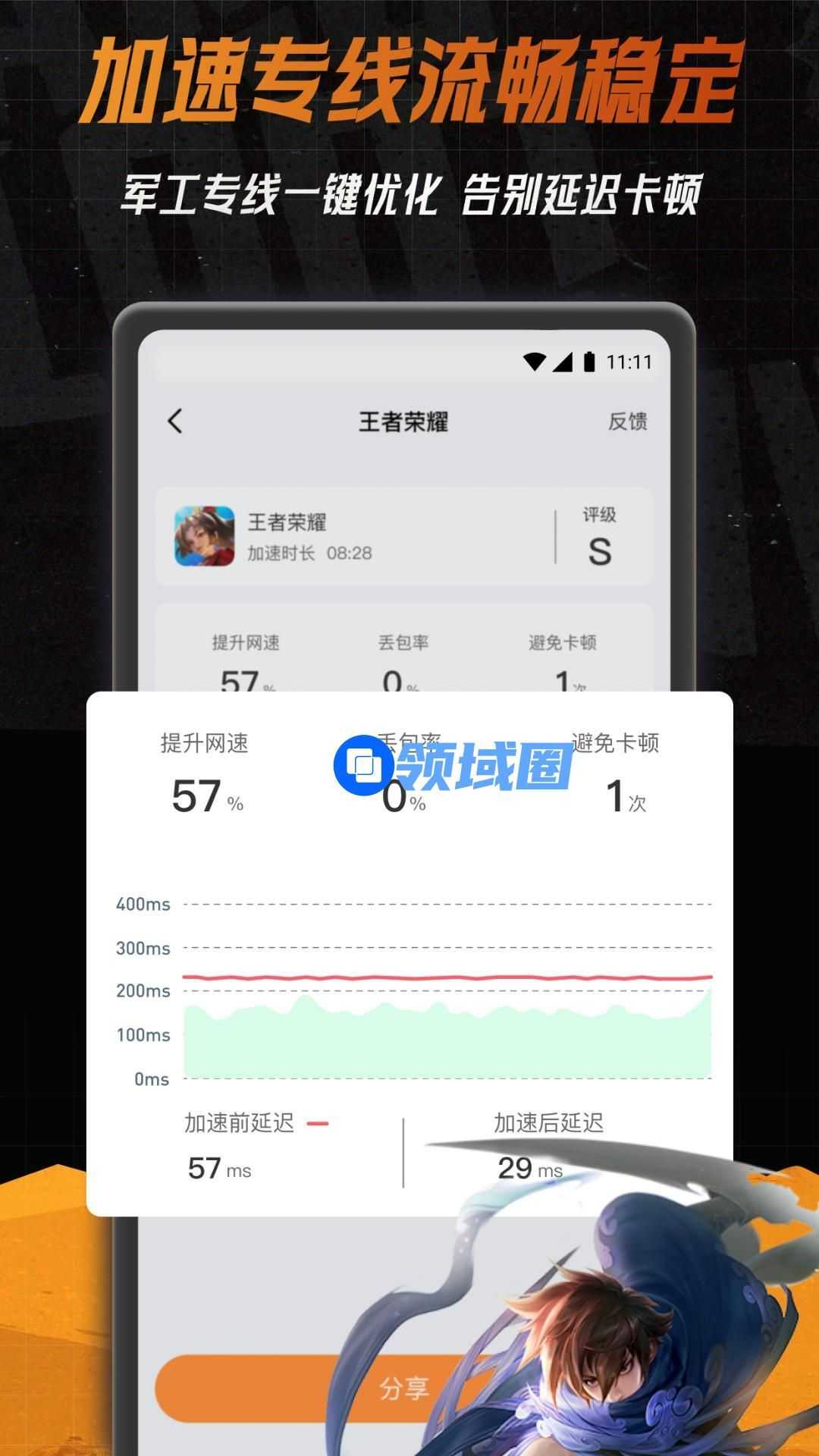 军工专线,一键优化,海量加速节点,自动匹配最优方案,超低延迟,纵享丝滑,打破网络限制,畅享游戏快感!