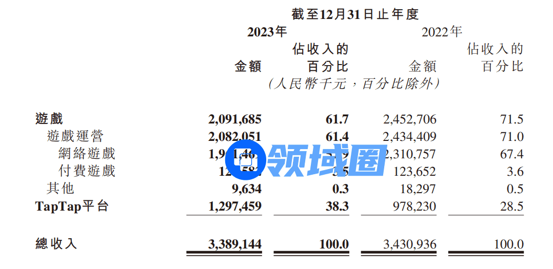 2023年,心动公司的游戏业务收入同比减少14.7%到20.91亿元,营收占比61.7%,TapTap平台业务收入同比增长32.6%到12.97亿元,营收占比38.3%。