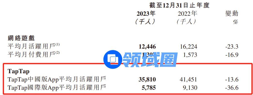 TapTap平台方面,中国版平均月活用户3581万人,同比减少13.6%,国际版月活578.5万人,同比减少36.6%。