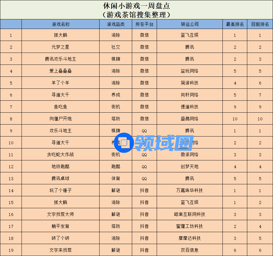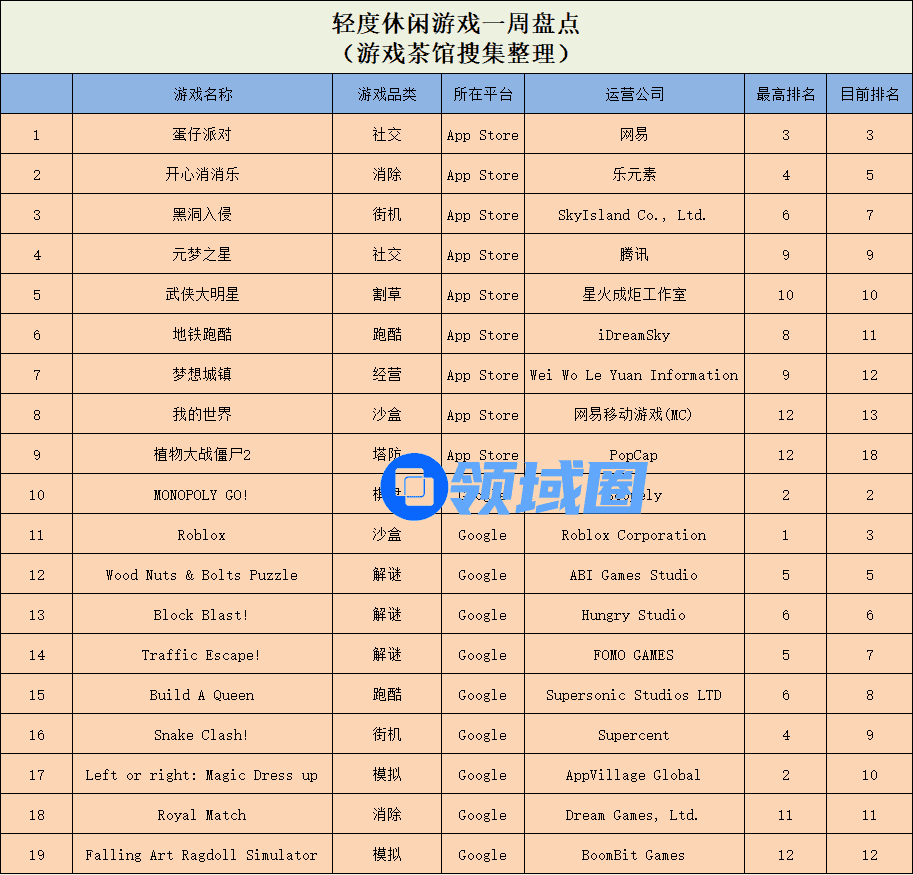 休闲游戏方面,本周多个小游戏榜单前列均不见新游冲榜,且榜单头部仍以消除和益智解谜类游戏居多。