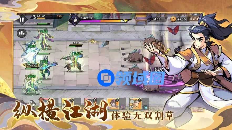 《武侠大明星》是一款国风武侠题材的肉鸽游戏,在游戏中担任武林盟主的玩家,将集结各路英雄豪杰,组成正义之师,共同抵抗神秘教派的侵袭。为了赢得胜利,玩家需要收集并灵活应用各类旷世秘籍,搭配不同英雄豪杰的特长和技能,克服重重困难和挑战,最终击退神秘教派,恢复武林的和平与安宁。