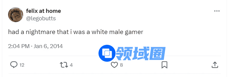 同年,Kramer说:做了一个噩梦,梦到自己成为了一名白人男性游戏玩家。