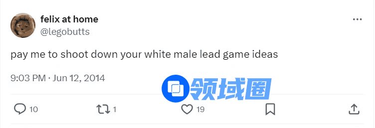 他甚至对于自己的工作内容也直言不讳:付钱给我,让我否决你们那些以白男为主角的游戏创意。