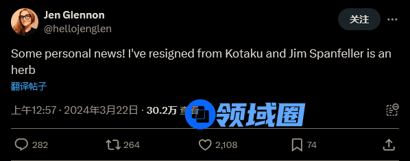 为了反对母公司的决定,kotaku主编Jen Glennon愤然提出离职,她在辞职信中写到:我坚信,颠倒kotaku编辑策略的决定从根本上是错误的。这个决定不仅与平台流量数据矛盾,而且还惊人地显示出了公司高层对于网站编辑生计需求的漠视。