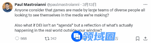 比如失眠组叙事总监Mary Kenney公开支持SBI,参与《漫威蜘蛛侠2》以及《漫威金刚狼》项目的高级编剧Paul Mastroianni也在随后发言,表示多样性不是一项“议程”,而是窗外真实发生的事情。