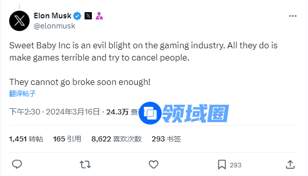 总是跑在网络冲浪一线的埃隆·马斯克,也在X上对此发表了自己的看法:SBI就是游戏行业的一大祸害,他们所做的工作不过只是让游戏变得更糟糕,希望他们赶紧破产!