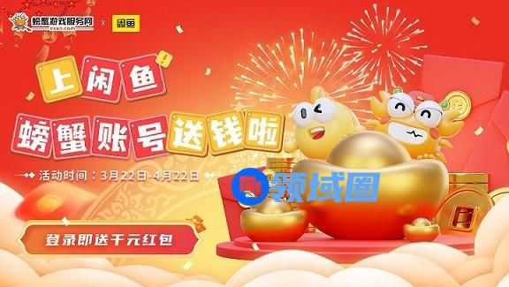 3月22日起,用户登录闲鱼APP搜索“螃蟹账号”,即可领取高达1000元的螃蟹账号上线礼!在整个活动期间,螃蟹游戏服务网将在螃蟹账号小程序上持续送出重磅福利,与志同道合的玩家一起开启福利盛典!