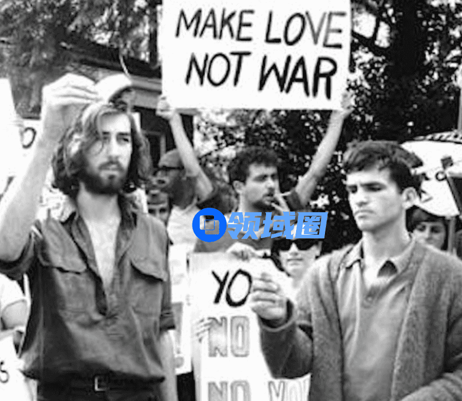 当两句话连在一起时,便构成了那句著名的反战标语:“要爱,不要战争”(Make love, not war)