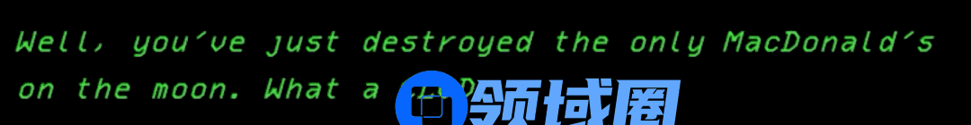 如果玩家正常着陆,登陆器里会冒出一个宇航员,他会跑到麦当劳里打包两个芝士汉堡和一个巨无霸,而如果玩家操作失误把麦当劳给撞毁了,屏幕上则会显示:“很好,你刚刚摧毁了月球上唯一一间麦当劳”。