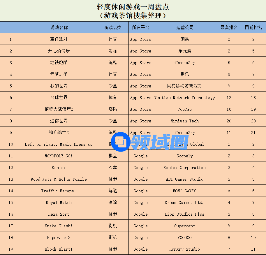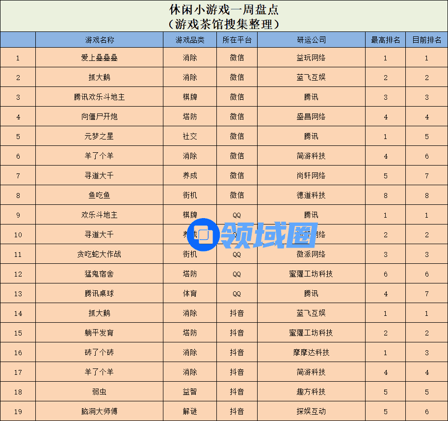 休闲新游周报每周统计微信小游戏、QQ小游戏、抖音小游戏、硬核小游戏以及App Store和Google Play上的新游爆款,并按照分类制作表格,将游戏排名情况等信息公布,希望给到行业同侪帮助。