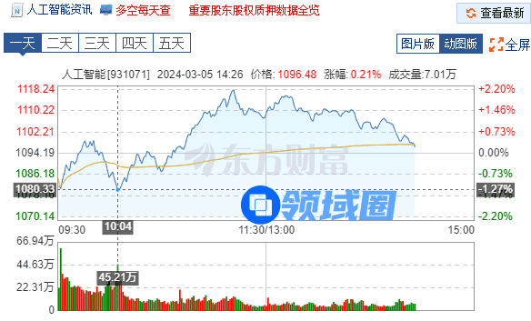 报告出台后,据东方财富网数据,人工智能股价走势迅速走高。
