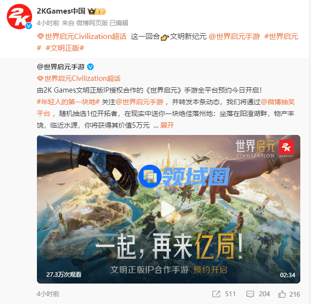 2K Games作为一家拥有众多一线国际游戏产品的游戏大厂,在国内市场一直和腾讯保持着相当深入的合作关系。双方联合开发、腾讯负责运营的《NBA 2K online》系列已经有十多年的历史。而这次《世界启元》同样也是2K和腾讯的又一次深入合作。腾讯负责研发,2K也不光仅仅提供授权,不光在宣发上给予了相当的支持,还负责游戏研发流程的监制工作,保证研发的总体大方向。毕竟《文明》IP自从2005年收归2K后,一直都是2K旗下一线的宝藏IP,2K自然懂得爱惜羽毛。