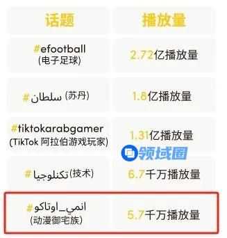 有意思的是,游戏茶馆观察到中东玩家也对二次元内容较为感兴趣。动漫御宅族相关话题播放量达5700万,一些创作者COS成知名动漫角色,能吸引大量眼球。这提示我们,在中东动漫IP影响力依然深远,不妨在战争游戏中加入一些知名动漫IP联动,说不定能收获意想不到的效果。