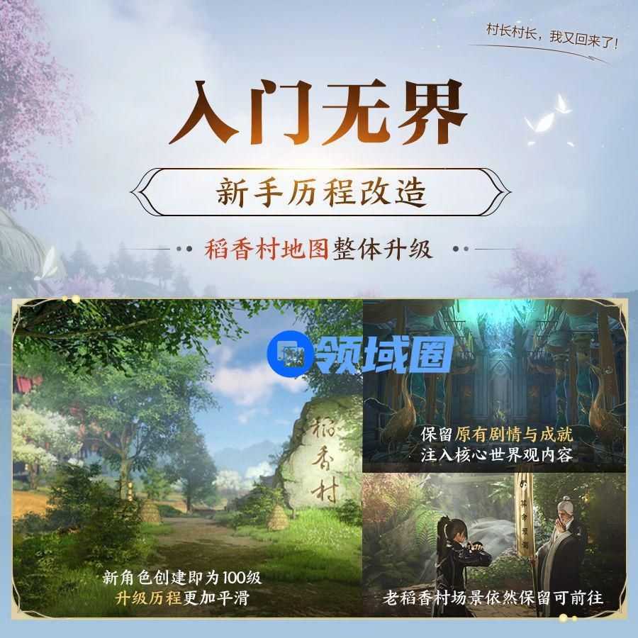 稻香村地图整体升级,新手历程优化上线,新角色建立即为100级!全新稻香村故人依旧,地图场景焕然一新,更具趣味与互动性,山水风景美如画,不如与旧友新朋叙叙旧。新开放区域“九重玄天宫”大气磅礴,“大侠墓”支线探索暗藏玄机,新任务指引生动有趣,萌新侠士可在互动剧情中逐步熟悉基础操作,深入探索江湖故事。