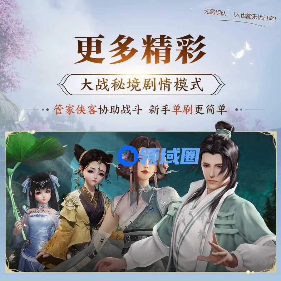 在剧情模式中,侠士们所面对的首领难度会有所下降,获得的任务收益也相对较少,但对于萌新来说将会有充分的单人练习时间,可以有效熟悉大战秘境打法,了解基础PVE机制,无师也能自通!
