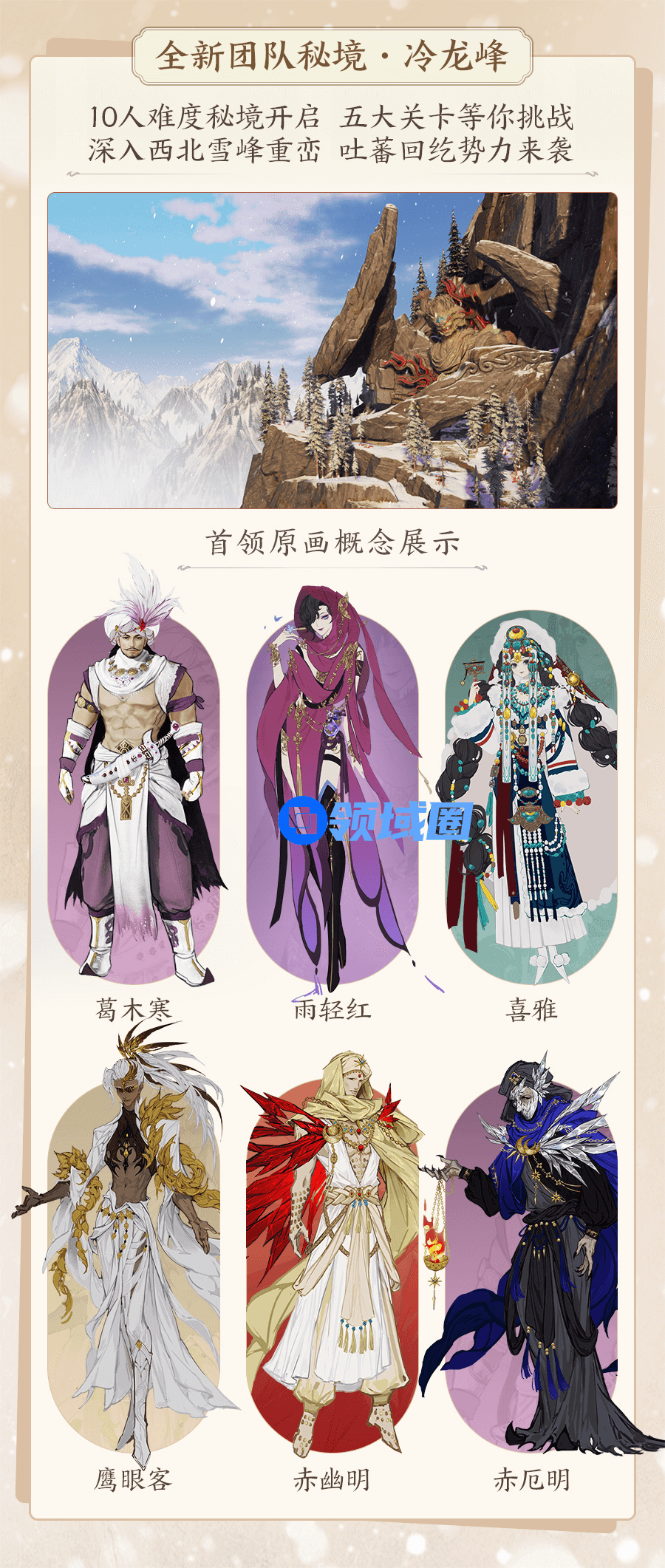 雪峰之巅,短兵相接!全新团队秘境“冷龙峰”如被囚巨龙,蛰伏于群山重峦间,六位秘境首领五大关卡即将登场,10人难度率先上线测试服!侠士将深入人迹罕至的西北雪峰,与吐蕃、回纥、清燕楼等多方势力交手过招,隐秘往事即将揭晓……