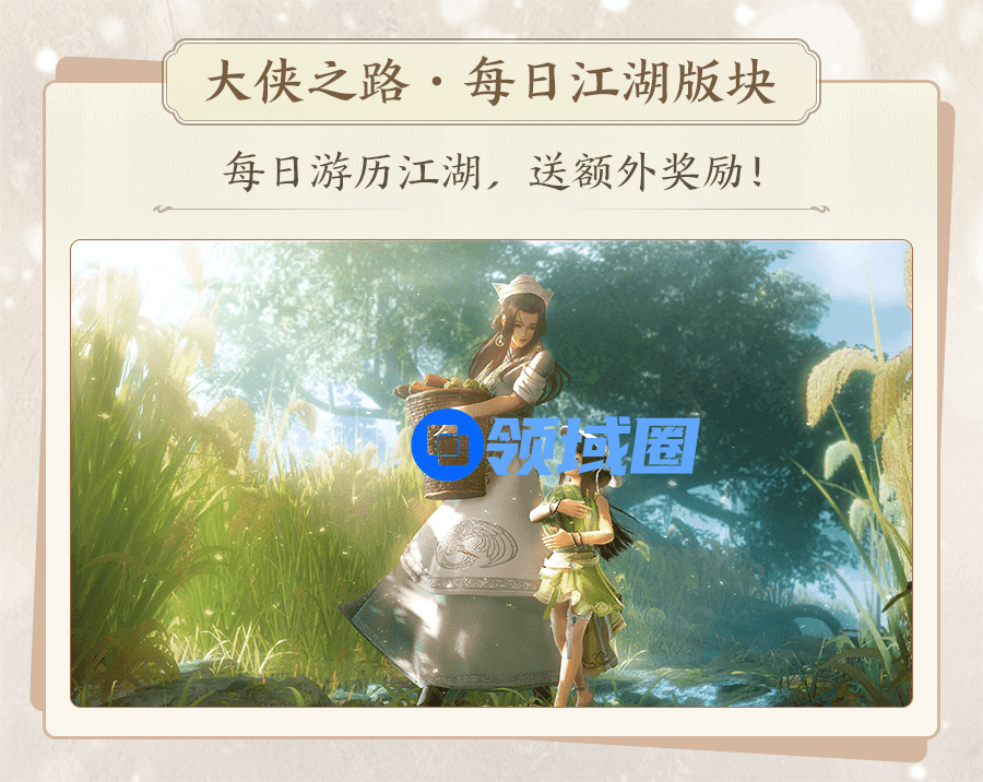 既得趣味又拿奖励,关键还不费时,快来瞧一瞧!大侠之路新增“每日江湖”版块惊喜满满,只需花费5-10分钟,完成每日游历江湖小任务,即可累积江湖点数获得额外奖励!