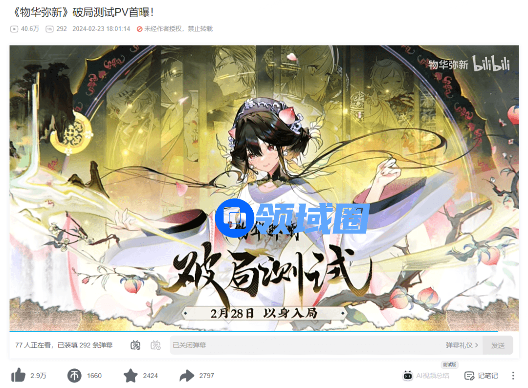 在B站获得了大量的关注,是因为《物华弥新》本身的游戏内容和B站浓厚的二次元氛围契合度非常高;同时,题材对传统文化、新国风精品的追求,也与B站知识区、纪录片的受众不谋而合。