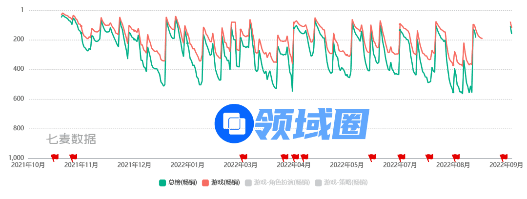 国服发售一年畅销榜排名趋势(图源:七麦数据)