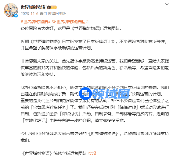 同时,《世界弹射物语》国服还在运营,此举引起玩家热议。