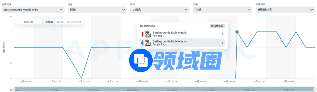 《BGMI》回归后,热度颇高。APP magic数据显示,去年下半年开始,《BGMI》开始霸榜印度APP畅销榜,并在 23 年 12 月创下了历史最高的单月销售额。