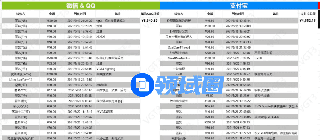 这张众筹名单来自于国人举办的赛事VGT3,赛事组将每一笔打款都记录了下来,并将其进行了公示,作为国内举办的最高规格的药抗国际赛,这次比赛吸引了国内外许多队伍参与,也引起了国人玩家们的强烈反响。