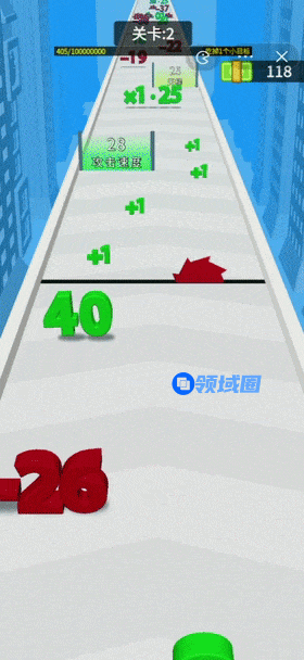 在抖音小游戏榜单上,同样有一款跑酷玩法的产品冲上了榜单前列,且其当前位于热门榜第6名,该游戏就是《进击的数字》。与以往的数字跑酷游戏略微有所不同的是,该游戏中的数字在前进的过程中,不仅会通过加减乘除运算发生变化,还会持续自动发出数字攻击,用以消灭掉前进路上的阻碍。