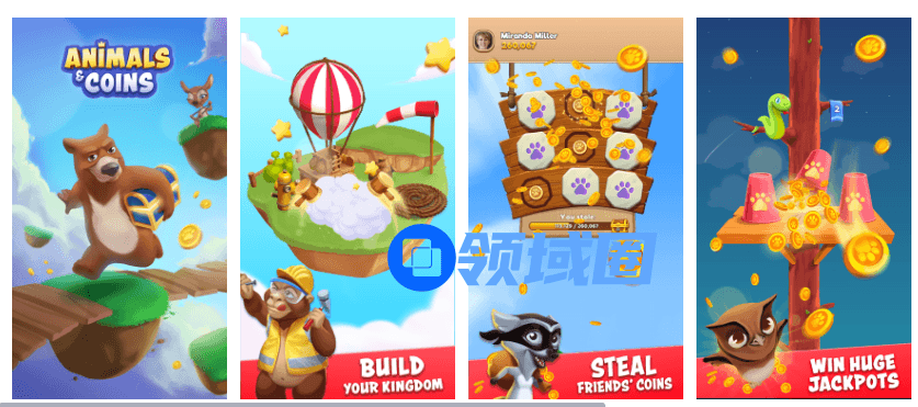 《Animals & Coins Adventure Game》的主要玩法是通过掷骰子的方式进行冒险,玩家可以根据骰子点数获得金币奖励、打劫其他对手或者偷取金币等选项,而累计的金币又可以用于购买或升级建筑,这些建筑也将持续产出更多金币奖励,不过在遭遇袭击的时候,会损失一定金币。