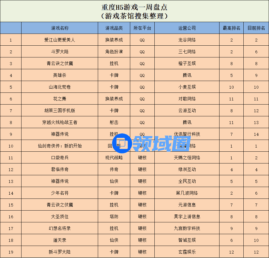 重度游戏方面,在QQ小游戏畅销榜单中,龙谷网络旗下的换装养成游戏《爱江山更爱美人》登顶QQ重度小游戏魁首,三七网络旗下的《斗罗大陆》和挂机玩法的《青云诀之伏魔》则紧随其后,分别拿下了QQ小游戏畅销榜单第6名和第8名。同时,另一款放置挂机玩法的《神器传说》本周持续稳坐QQ小游戏畅销榜单前列,且其当前位于榜单第14名。