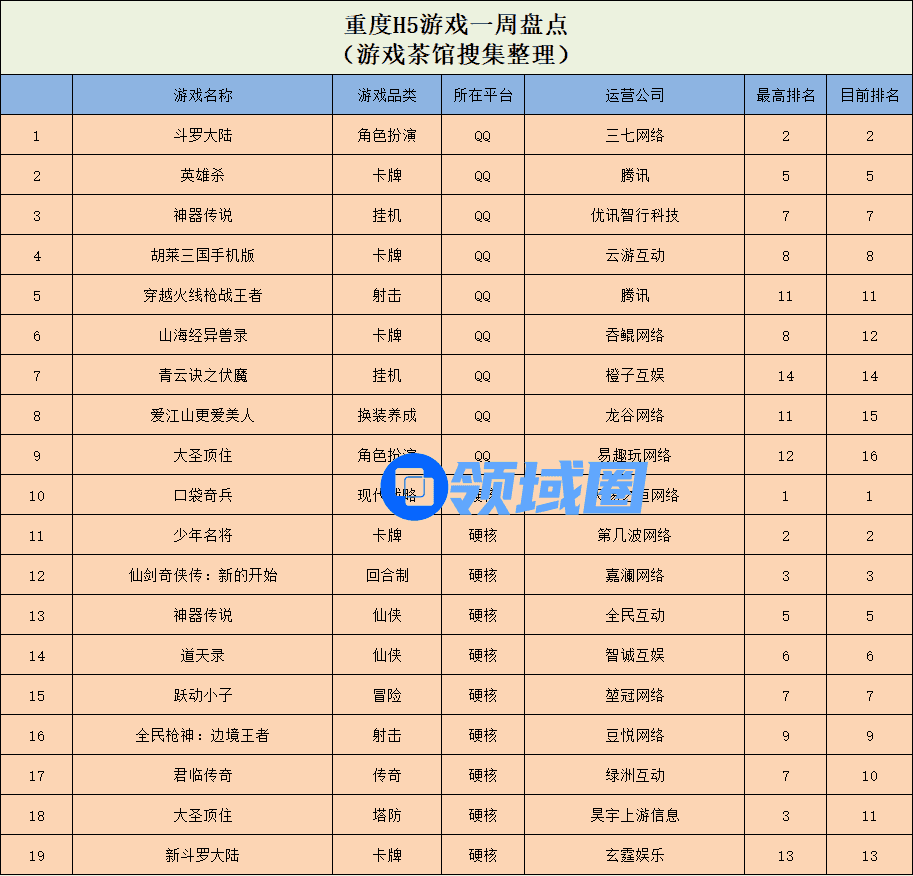 重度H5游戏:《斗罗大陆》又登魁首,《仙剑奇侠传:新的开始》稳坐TOP3