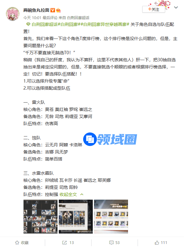 可怕的是,这还不是《白荆回廊》让人上头的全部。也不知道是哪位大神提出的“疯狂设想”,一夜之间《白荆回廊》“全员T0”的说法不禁走红,并且引起了玩家圈内的热议。