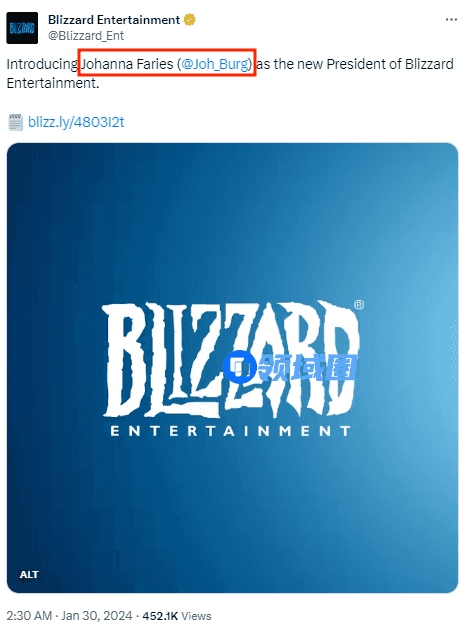 1月30日凌晨2时许,暴雪官宣将由《使命召唤》的IP总经理Johanna Faries接替Mike Ybarra的工作,出任暴雪总裁职位。